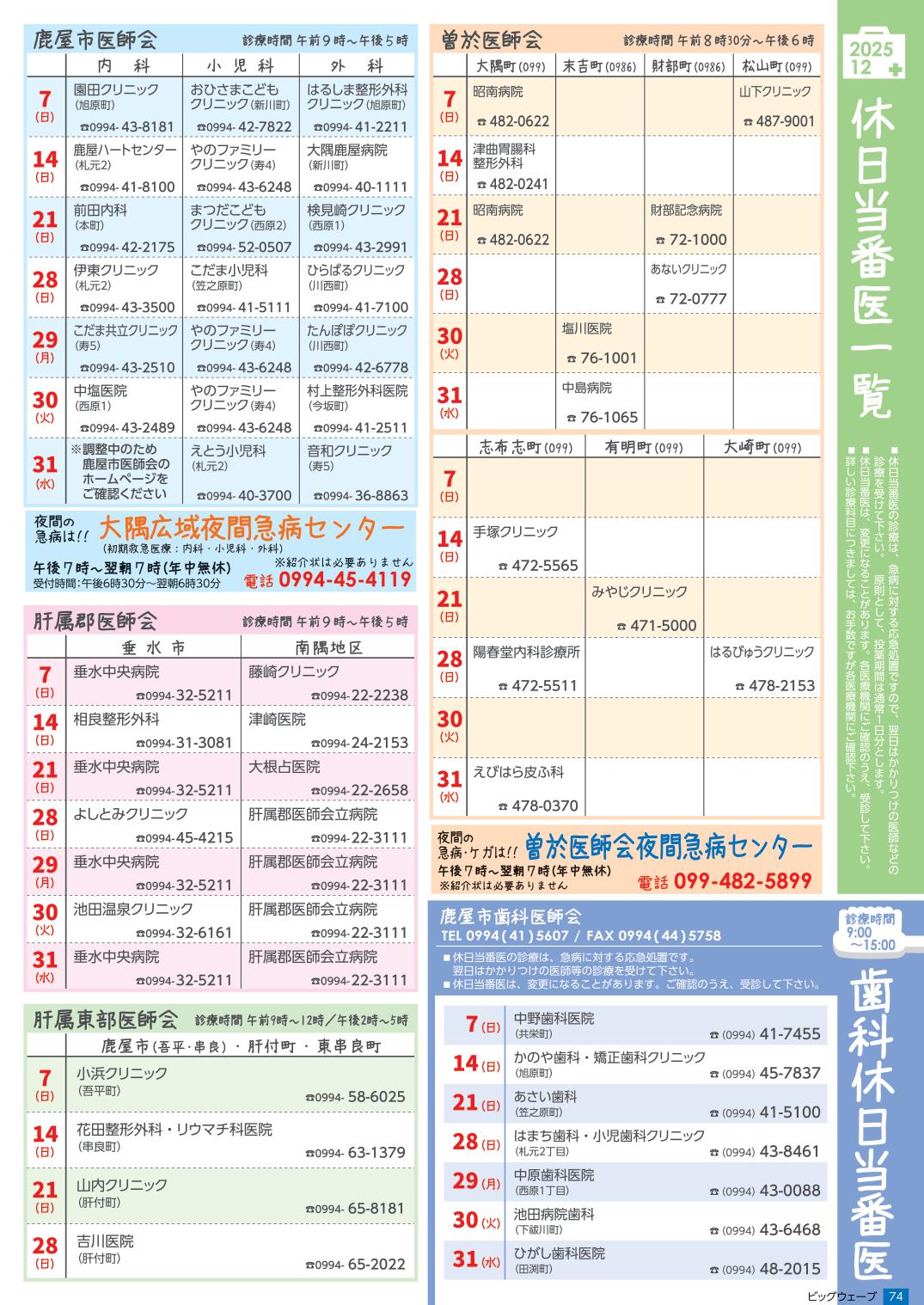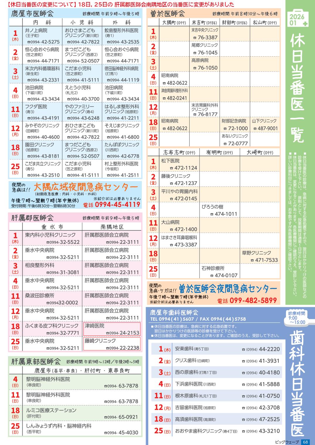 最新の情報は、鹿児島県医師会 休日当番医検索をご利用ください。