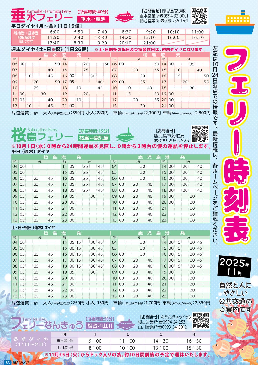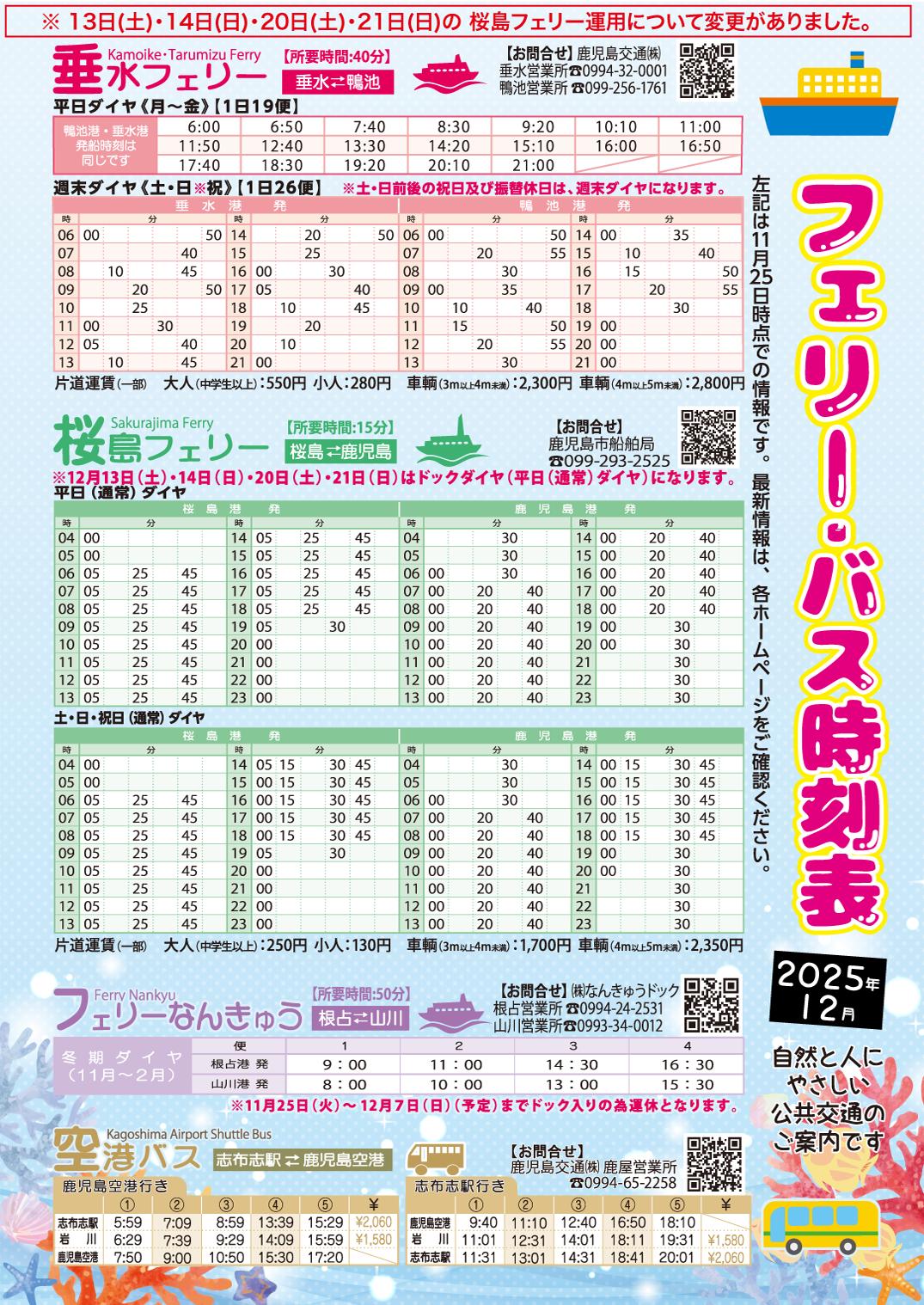 099-293-2525 ウェブサイト: https://www.city.kagoshima.lg.jp/sakurajima-ferry/index.html